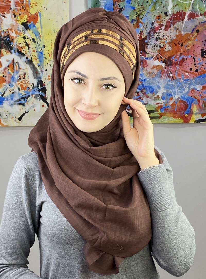 BUTİK AMBAR Koyu Kahverengi Asimetrik Şeritli Drapeli Şal