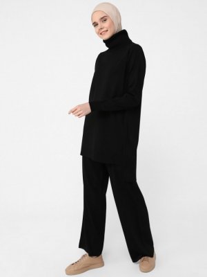 Refka Siyah Tunik & Pantolon İkili Triko Takım