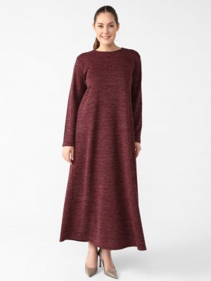 Alia Bordo Büyük Beden Bisiklet Yaka Simli Elbise