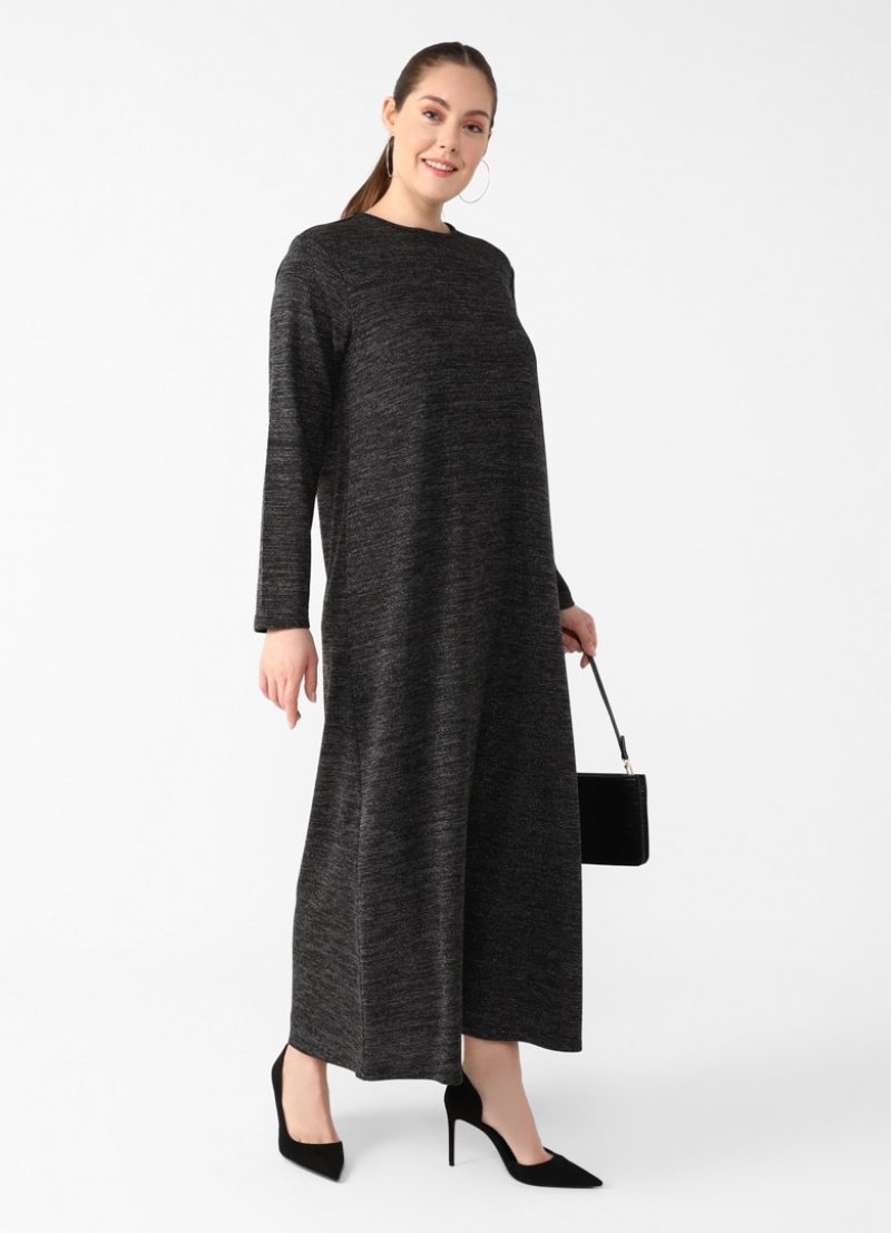 Alia Siyah Büyük Beden Bisiklet Yaka Simli Elbise