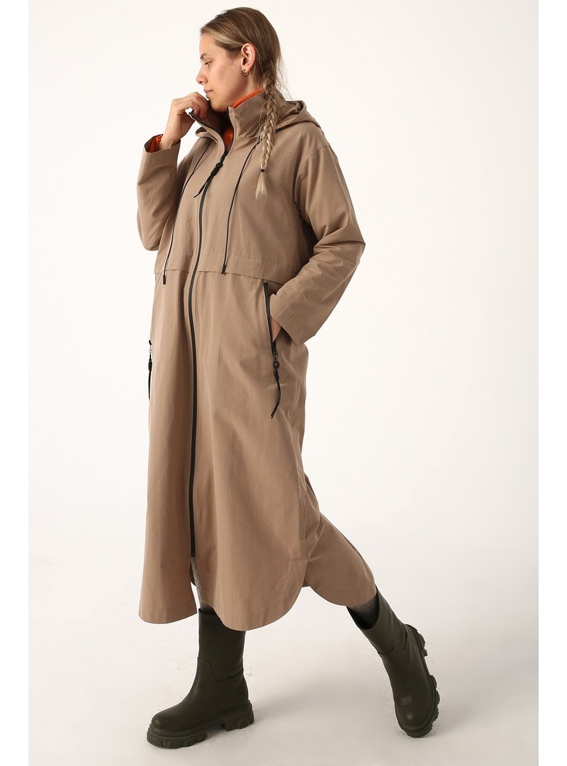 Allday Vizon Kapüşonlu Cepli Fermuarlı Trençkot