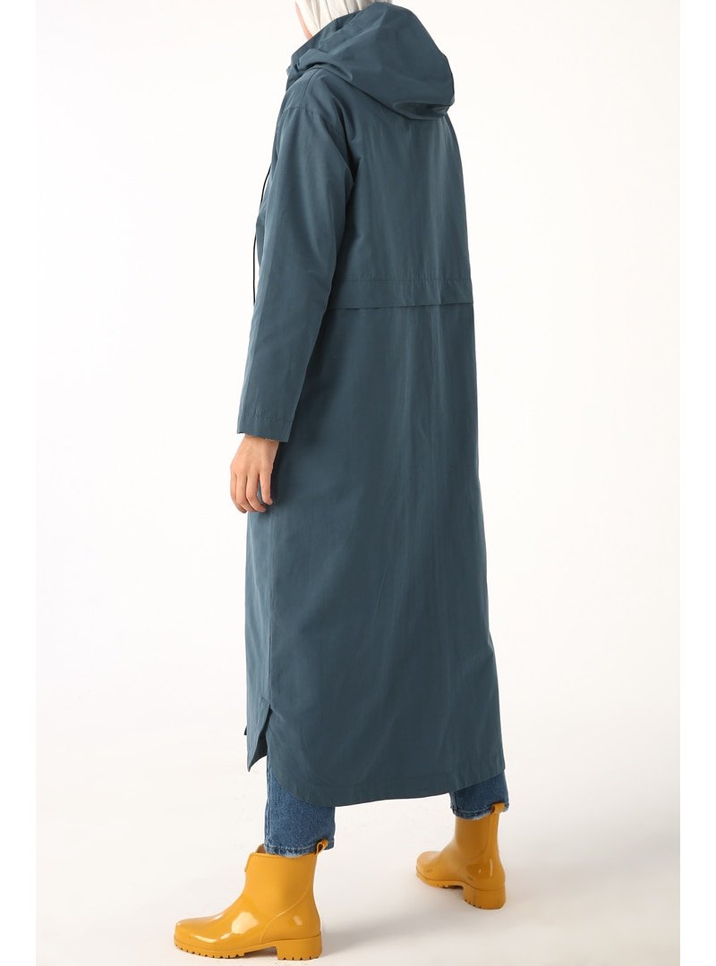 Allday Mavi Kapüşonlu Cepli Fermuarlı Trençkot