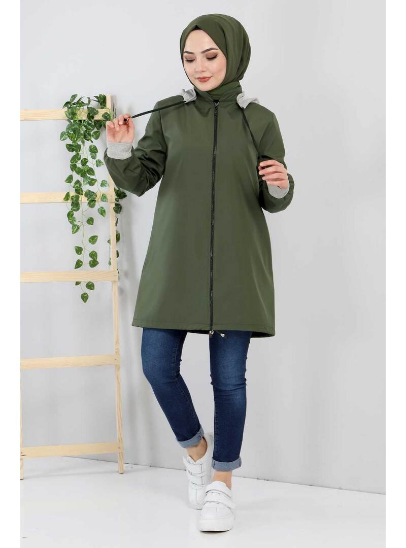 Tesettür Dünyası Haki Kapüşonlu Kısa Kap