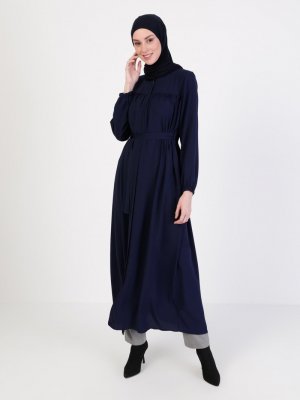 Jamila Lacivert Boydan Fermuarlı Ferace