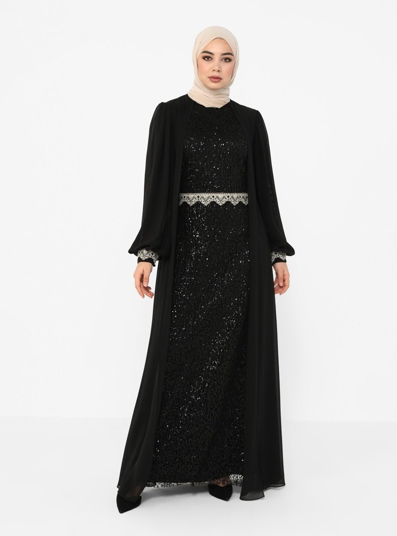 Tavin Siyah Güpür Ve Payet Detaylı Tüllü Abiye Elbise