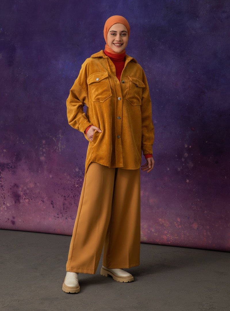 LOREEN Hardal Düğme Detaylı Kadife Tunik