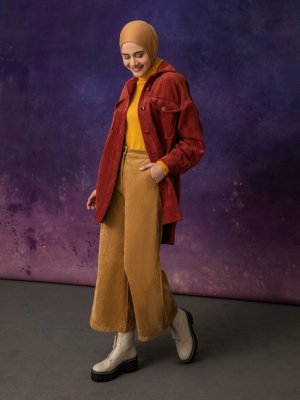 LOREEN Bisküvi Kadife Pantolon