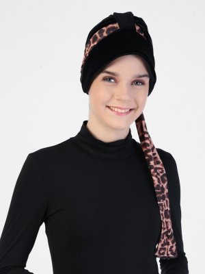 Sevda Bone Siyah Kadife Şallı Şapkalı Hazır Türban