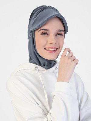 Sevda Bone Gri Şapkalı Hazır Türban