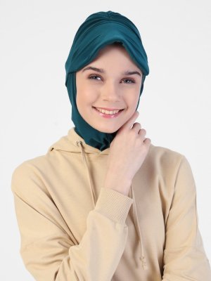 Sevda Bone Zümrüt Yeşili Şapkalı Hazır Türban