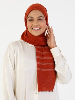 Zen İpek Taba Roza Fileli Şal
