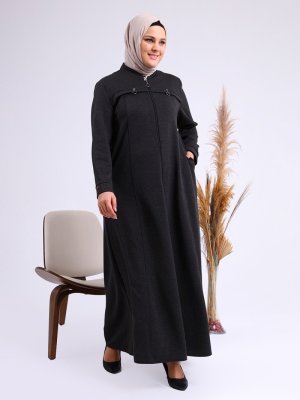 Ferace Füme Atlas Büyük Beden Fermuarlı Pardesü