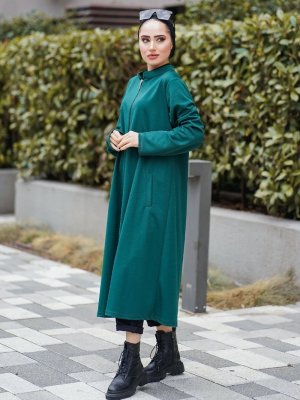 Topless Zümrüt Yeşili Boydan Fermuarlı Kap