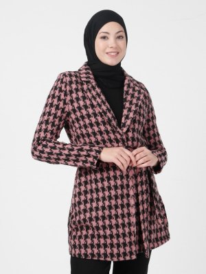 İnşirah Pudra Siyah Kazayağı Desenli Ceket