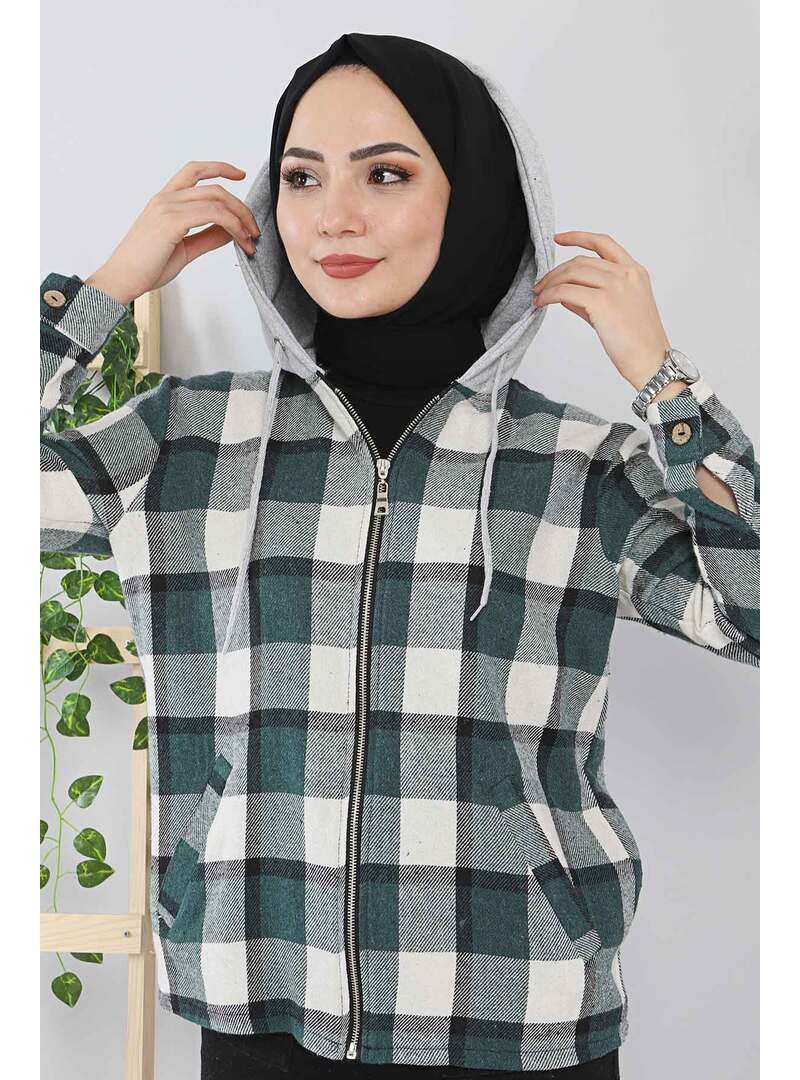 Tesettür Dünyası Yeşil Ekose Ceket Gömlek