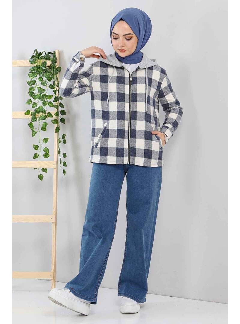 Tesettür Dünyası Lacivert Oduncu Ceket Gömlek