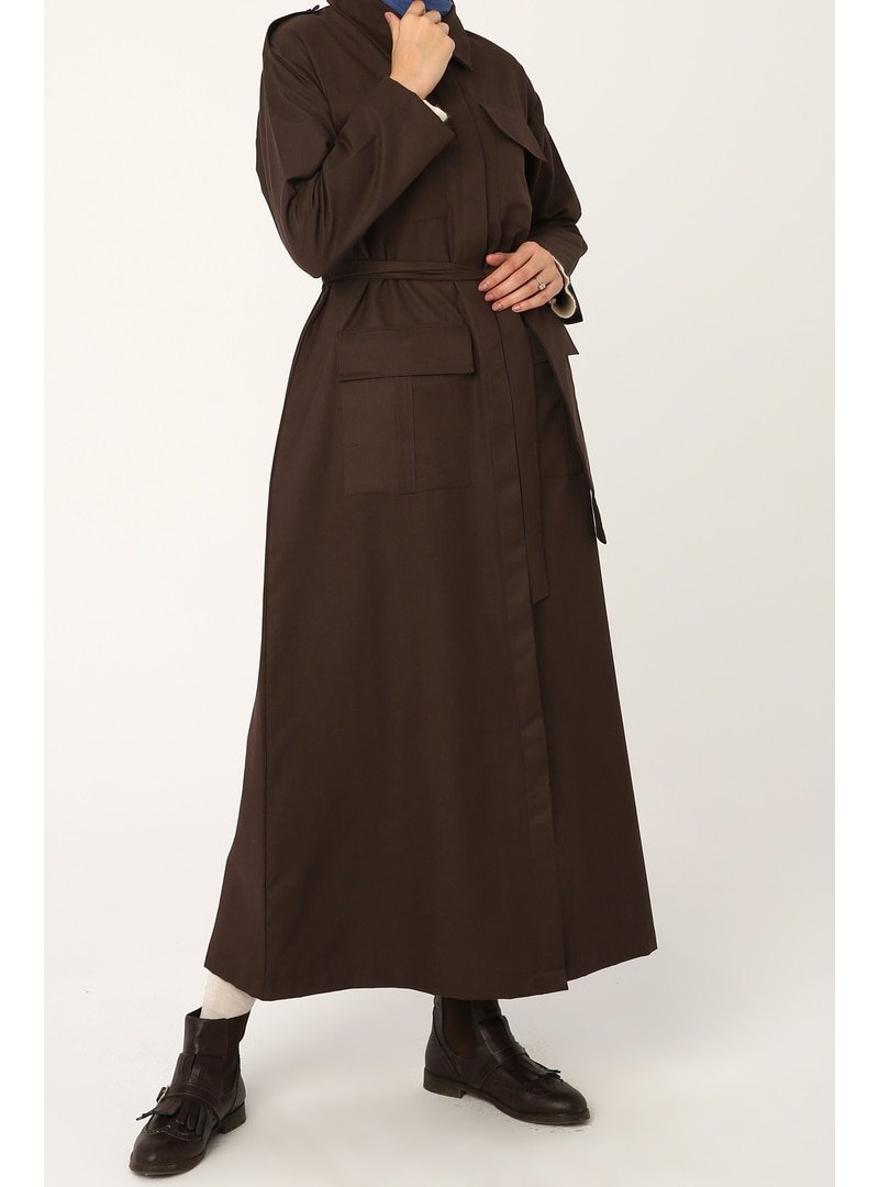 Allday Kahve Körük Cepli Kuşaklı Ferace