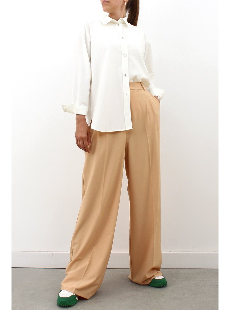 Allday Ekru Kumaş Kaplamalı Düğmeli Oversize Gömlek