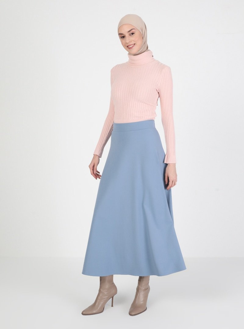 ONX10 İndigo Yandan Fermuarlı Sade Etek