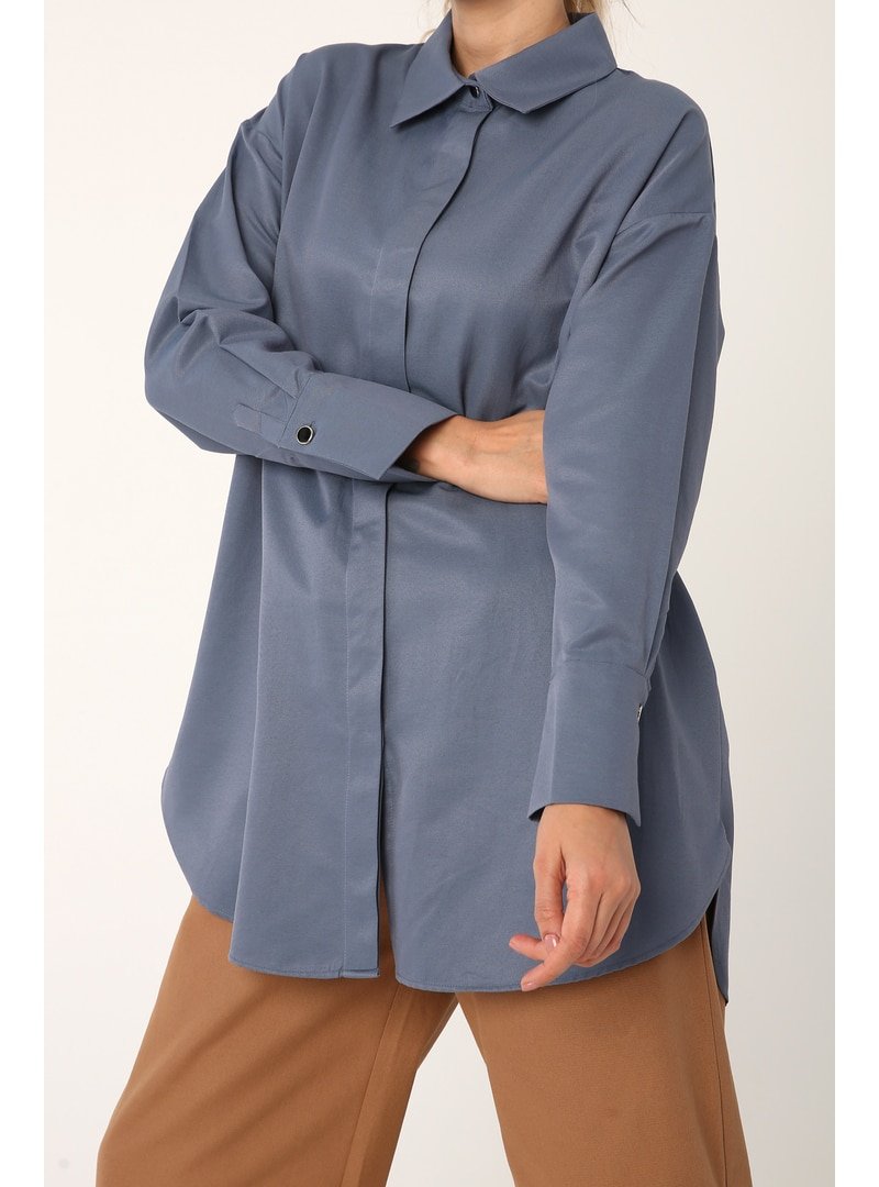 Allday İndigo Gizli Patlı Pamuklu Gömlek Tunik