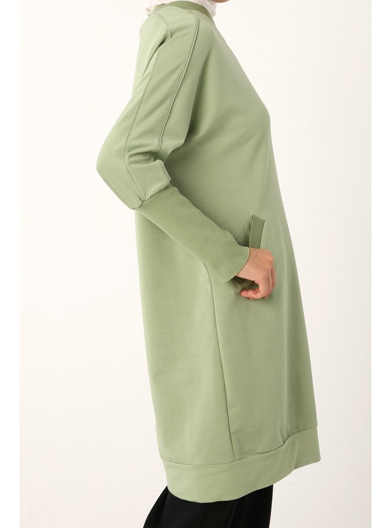Allday Uçuk Yeşil Rahat Kalıp Ara Biyeli Tunik
