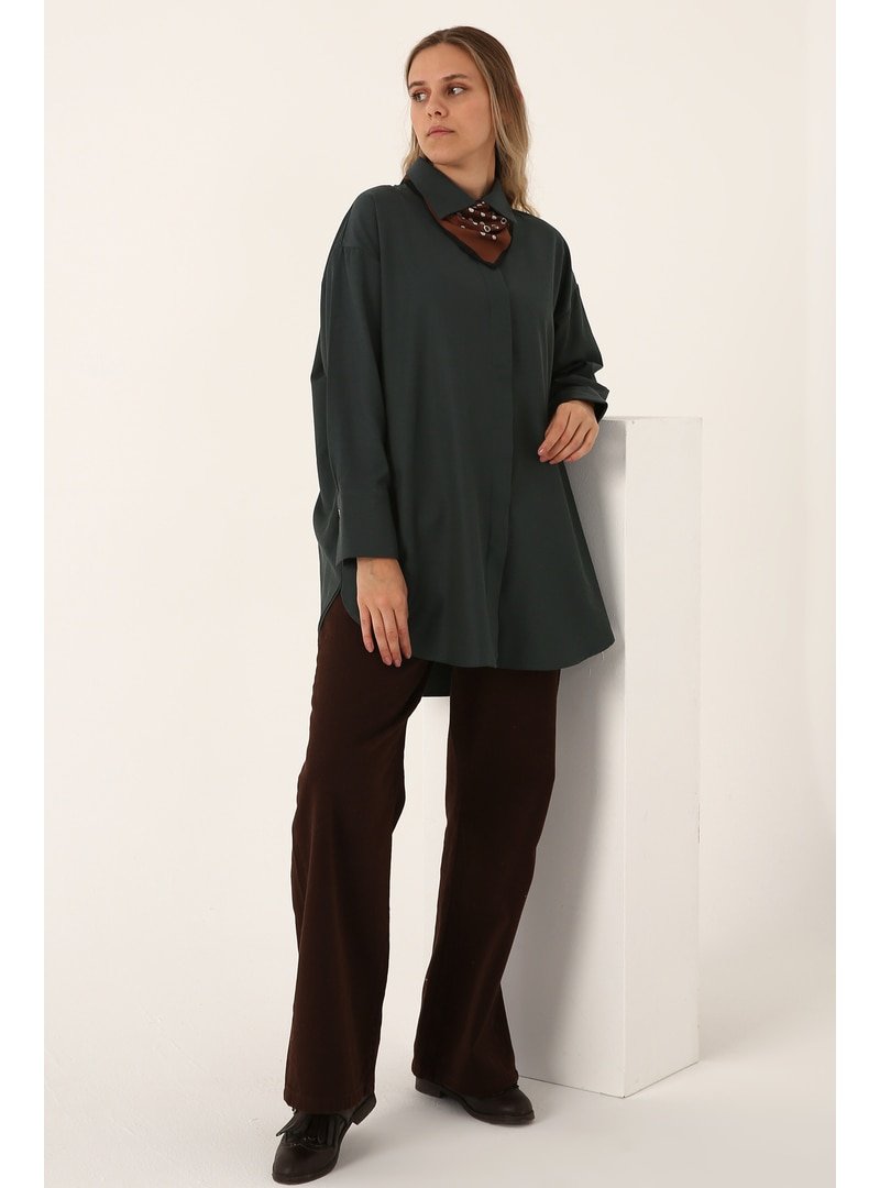 Allday Nefti Gizli Patlı Pamuklu Gömlek Tunik