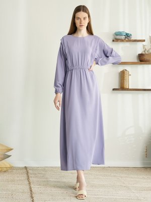 SoftandBasic Lila Büzgülü Dokuma Elbise