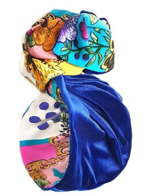Fabricca Design Mavi Desenli İçi Telli Kadife Bone