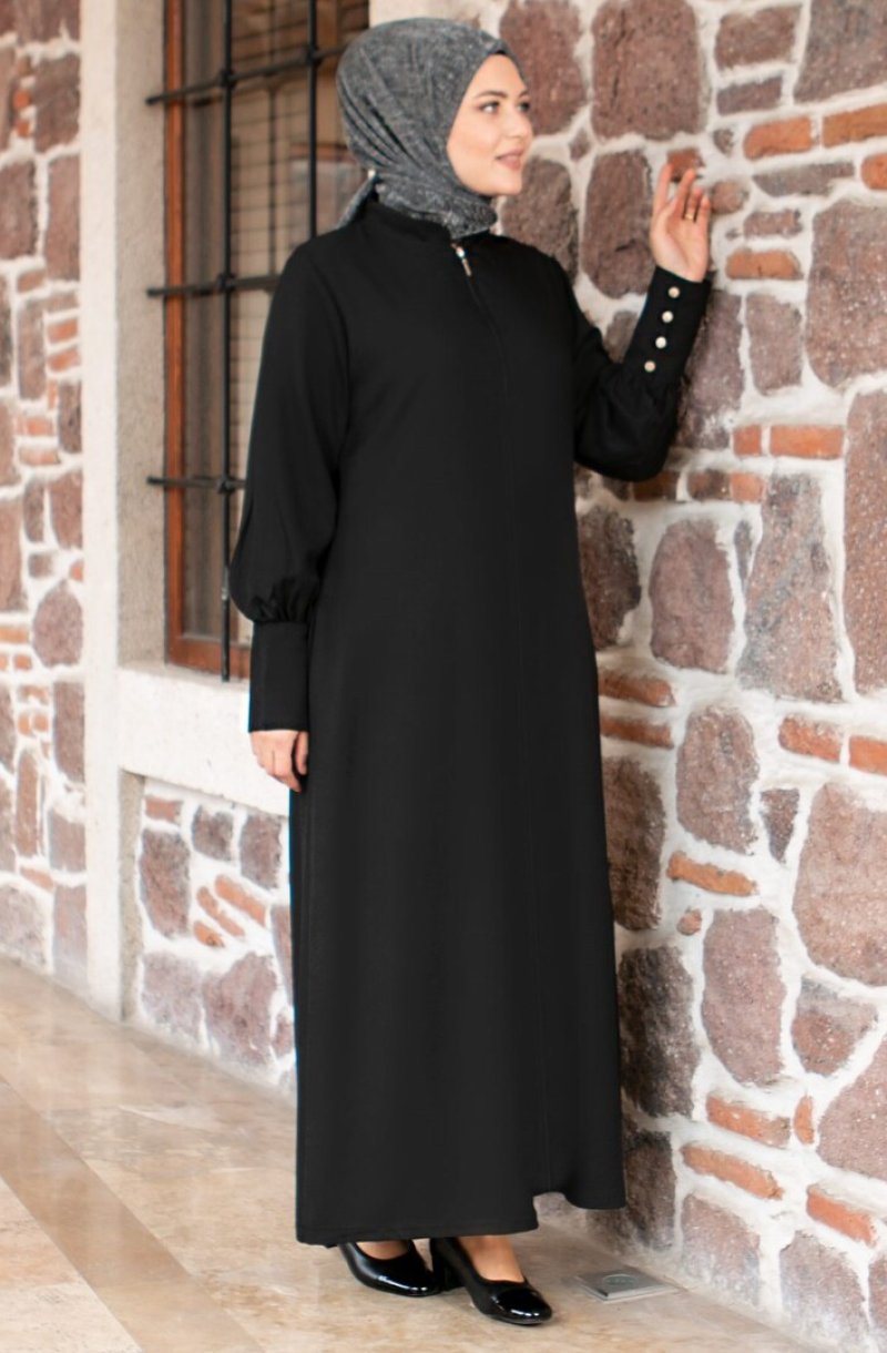 MFA Moda Siyah Düğme Detaylı Fermuarlı Ferace