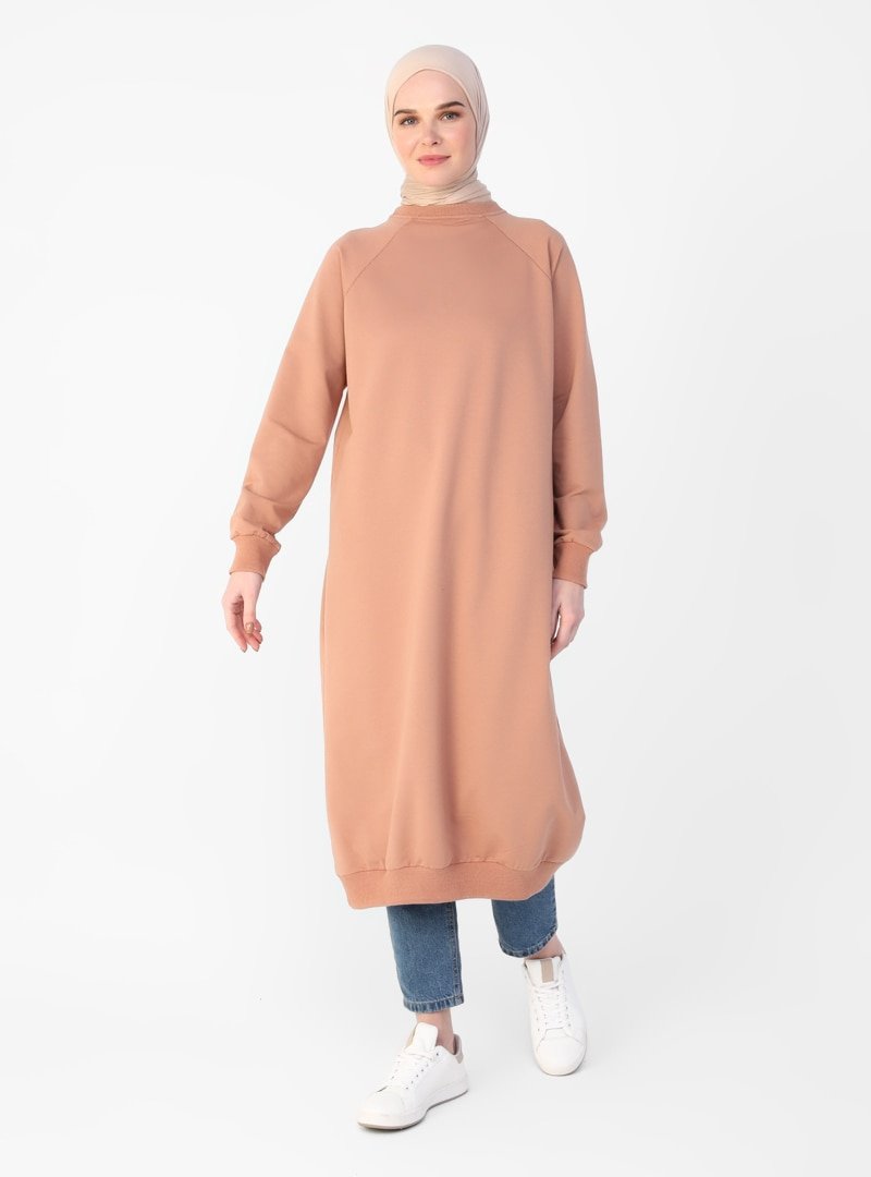 Refka Açık Kahve Bisiklet Yaka Sweatshirt