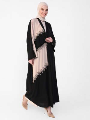 Refka Bej Siyah Güpür Detaylı Abiye Ferace