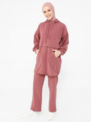 Refka Gül Kurusu Scuba Crep Tunik & Pantolon İkili Takım