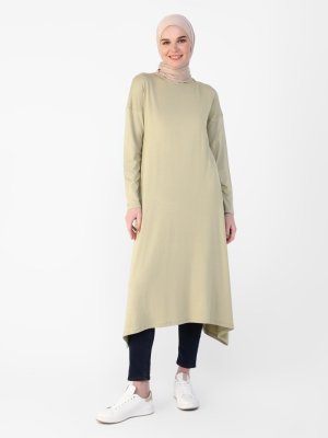 Refka Soft Yeşil Viskon Kumaştan Asimetrik Tunik 115 Cm