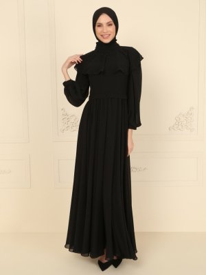 MODAYSA Siyah Çalıkuşu Yaka Ve Kemeri İncili Abiye Elbise