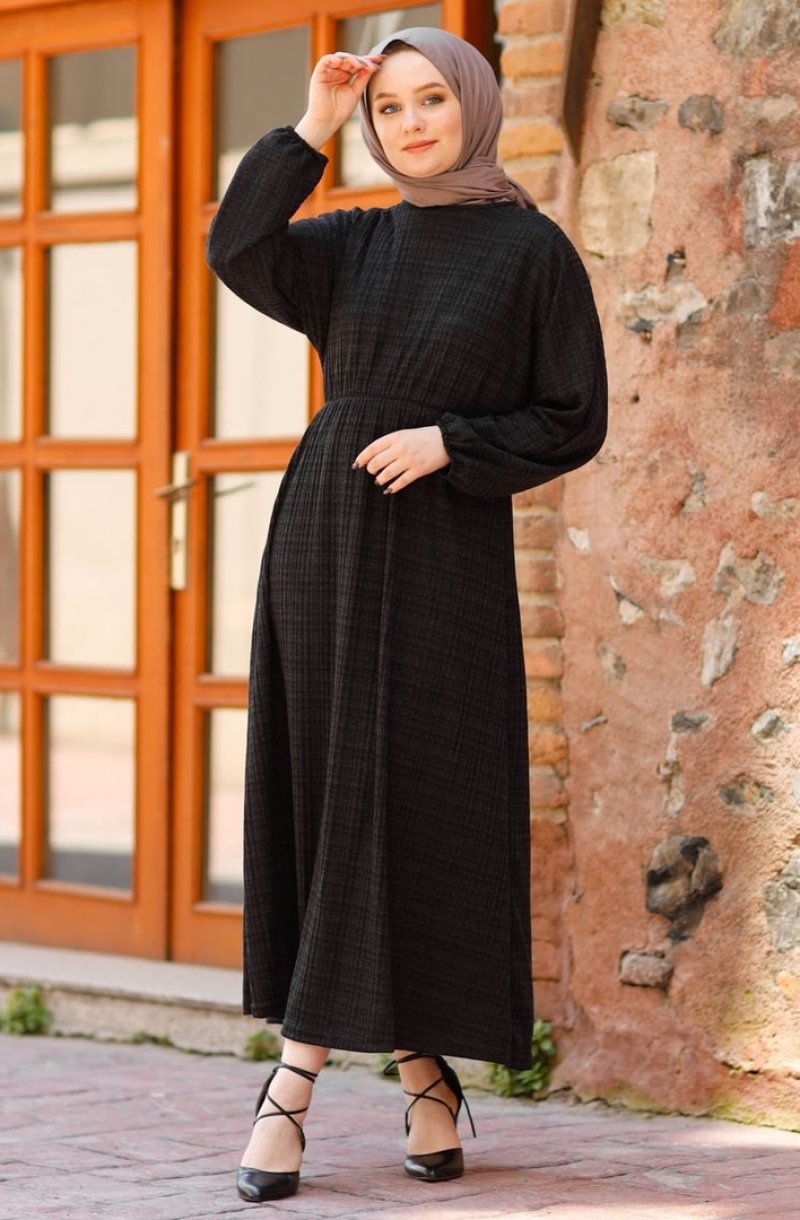 In Style Siyah Yarasa Kol Kaşkorse Elbise