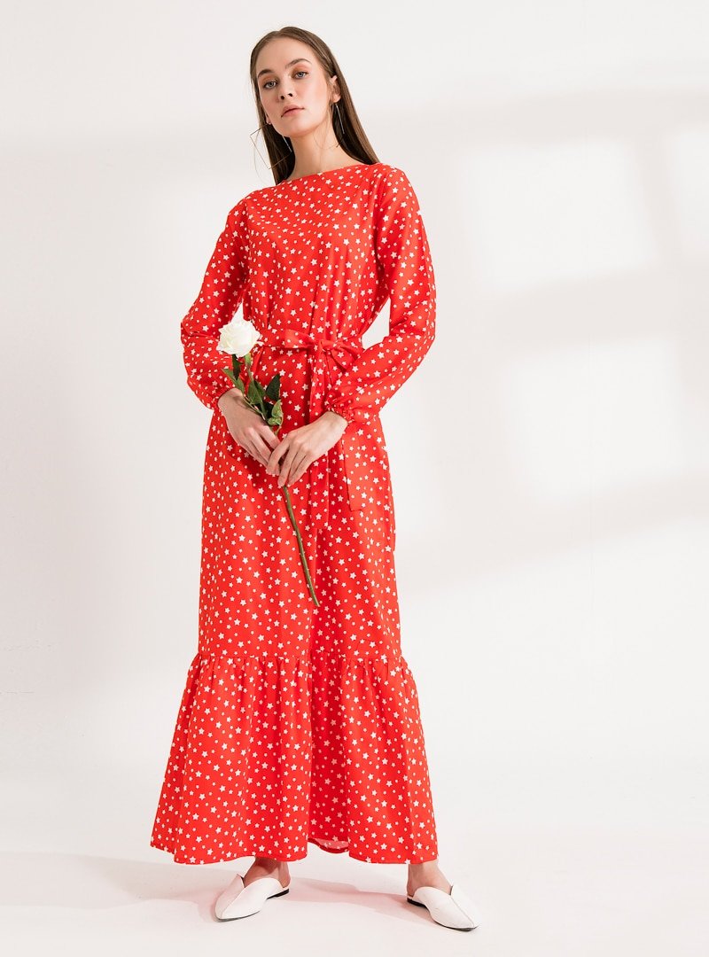 Ceylan Otantik Kırmızı Yıldız Fırfır Elbise