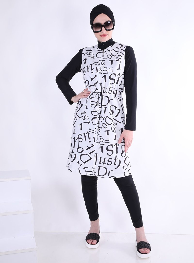 Ns Tasarım Beyaz Mayo Yazılı Desen Paraşüt Kumaştan Lü Takım