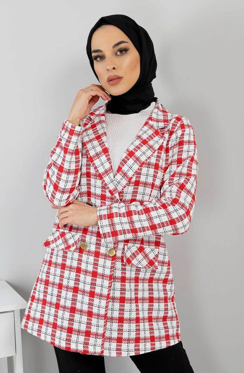 Tesettür Dünyası Kırmızı Düğmeli Blazer Ceket