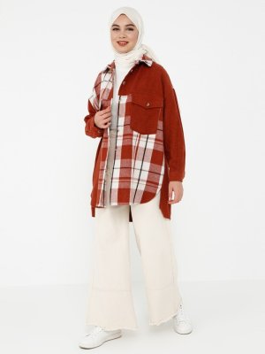 Tavin Kiremit Pamuk Kumaşlı Ekose Desenli Tunik