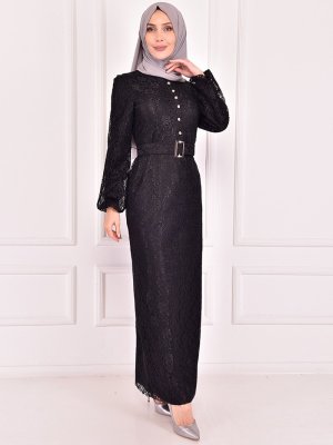 AYŞE MELEK TASARIM Siyah Dantelli Abiye Elbise