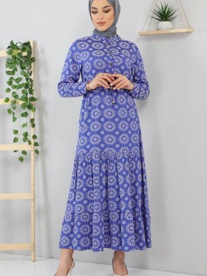 Tesettür Dünyası Mavi Desenli Elbise