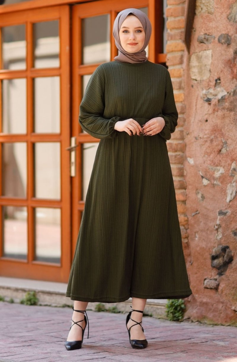 In Style Haki Yarasa Kol Kaşkorse Elbise