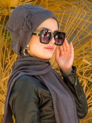 AİŞE TESETTÜR Füme Fiyonklu Triko Bere