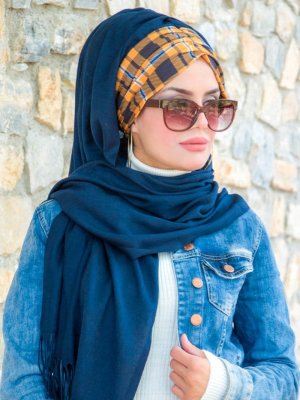 AİŞE TESETTÜR Lacivert Ekoseli Hazır Şal