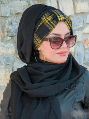 AİŞE TESETTÜR Siyah Ekoseli Hazır Şal