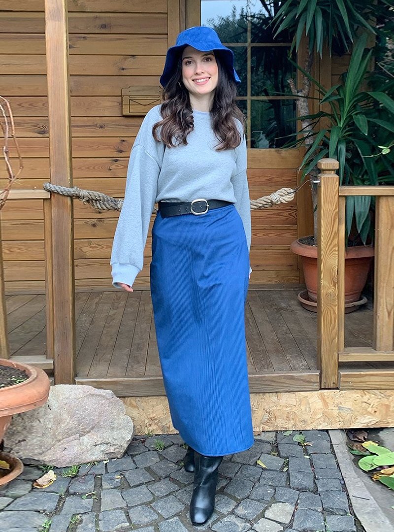 Ceylan Otantik İndigo Kadife Etekli Salopet