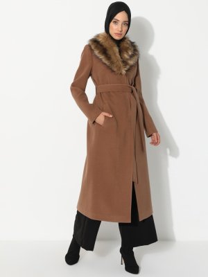 Concept By Olcay Taba Yakası Kürk Detaylı Kaban