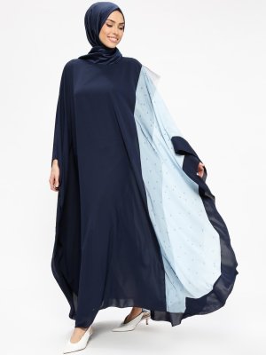Filizzade Lacivert Mavi İnci Detaylı Abiye Ferace
