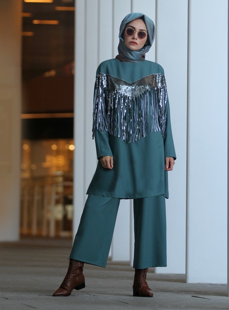 Gamze Özkul Petrol Payet Püsküllü İkili Takım