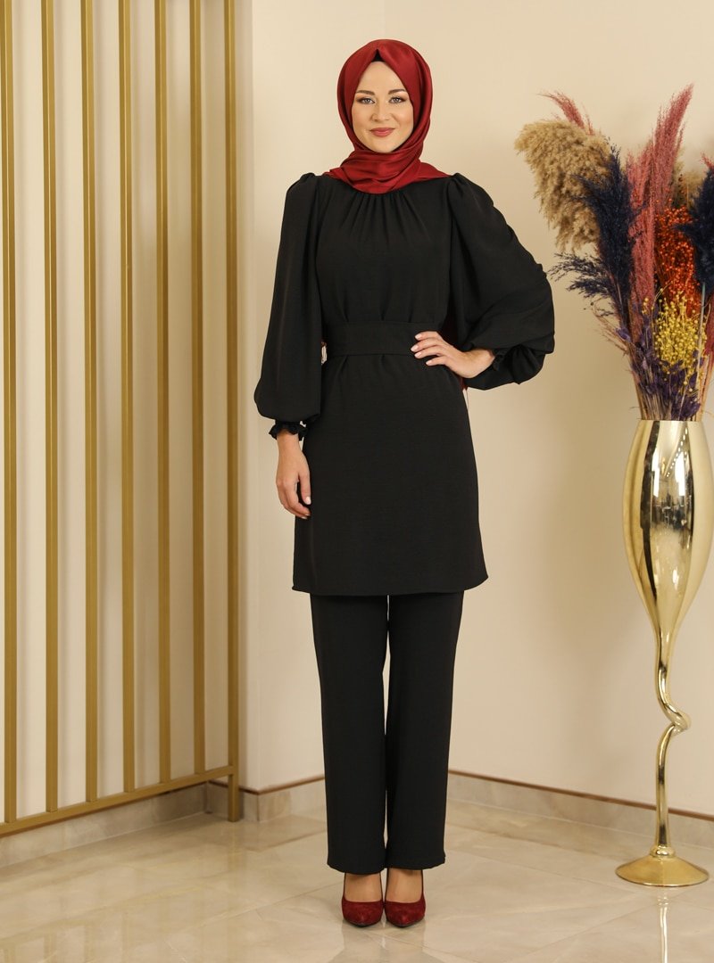 Fashion Showcase Design Siyah Balon Kol Tunik & Pantolon İkili Takım